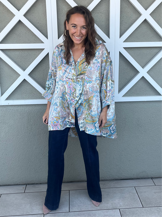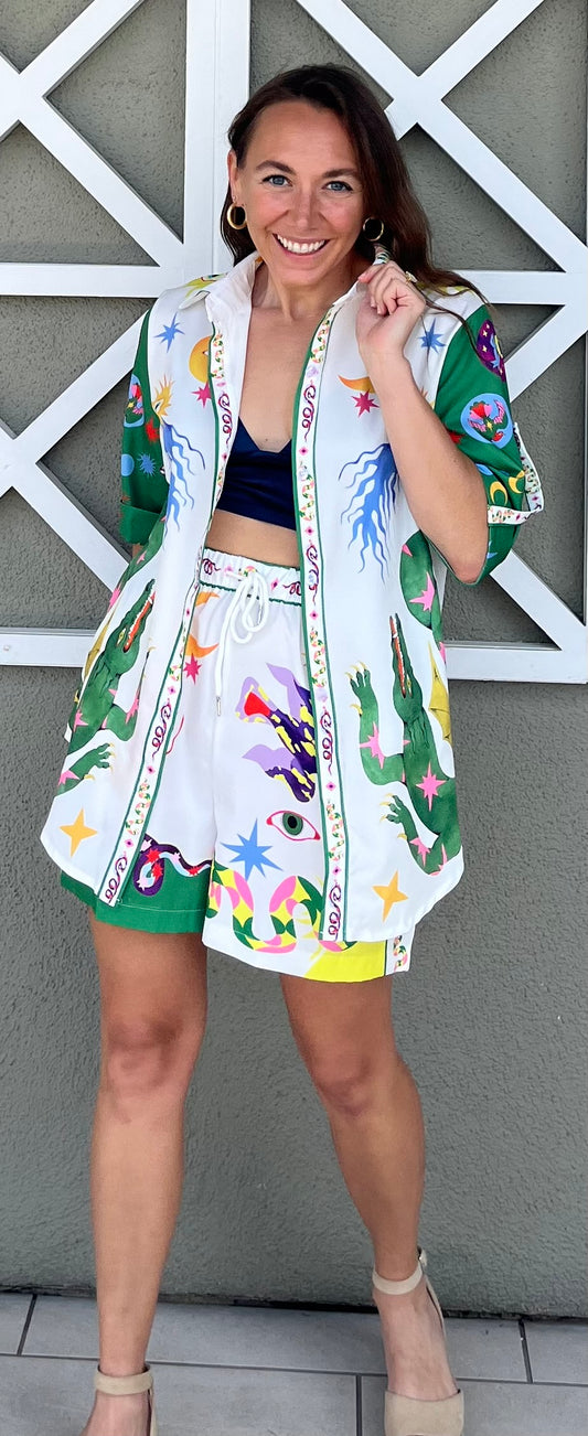 Palm Print Kimono Set