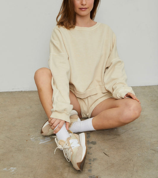 SOFT TERRY CROPPED DROP SHOULDER SWEAT SHIRT
