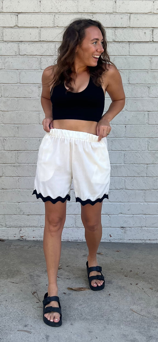 White Short with Black Wave Trim